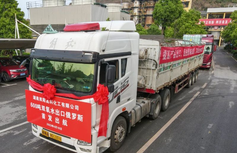 2022年8月,首次通過(guò)公海聯(lián)運(yùn)跨境卡車班列運(yùn)輸方式出口400噸高純雙氧水至緬甸后,雙陽(yáng)高科陸續(xù)小批量打入俄羅斯市場(chǎng),產(chǎn)品質(zhì)量與服務(wù)接續(xù)獲得肯定。2023年4月份,通過(guò)銷售團(tuán)隊(duì)努力,再一次先款后貨成功簽約俄羅斯客戶,獲得600噸大訂單。